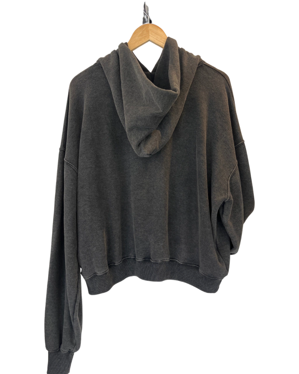 El stone wash le da a este buzo ese toque vintage y moderno al mismo tiempo.